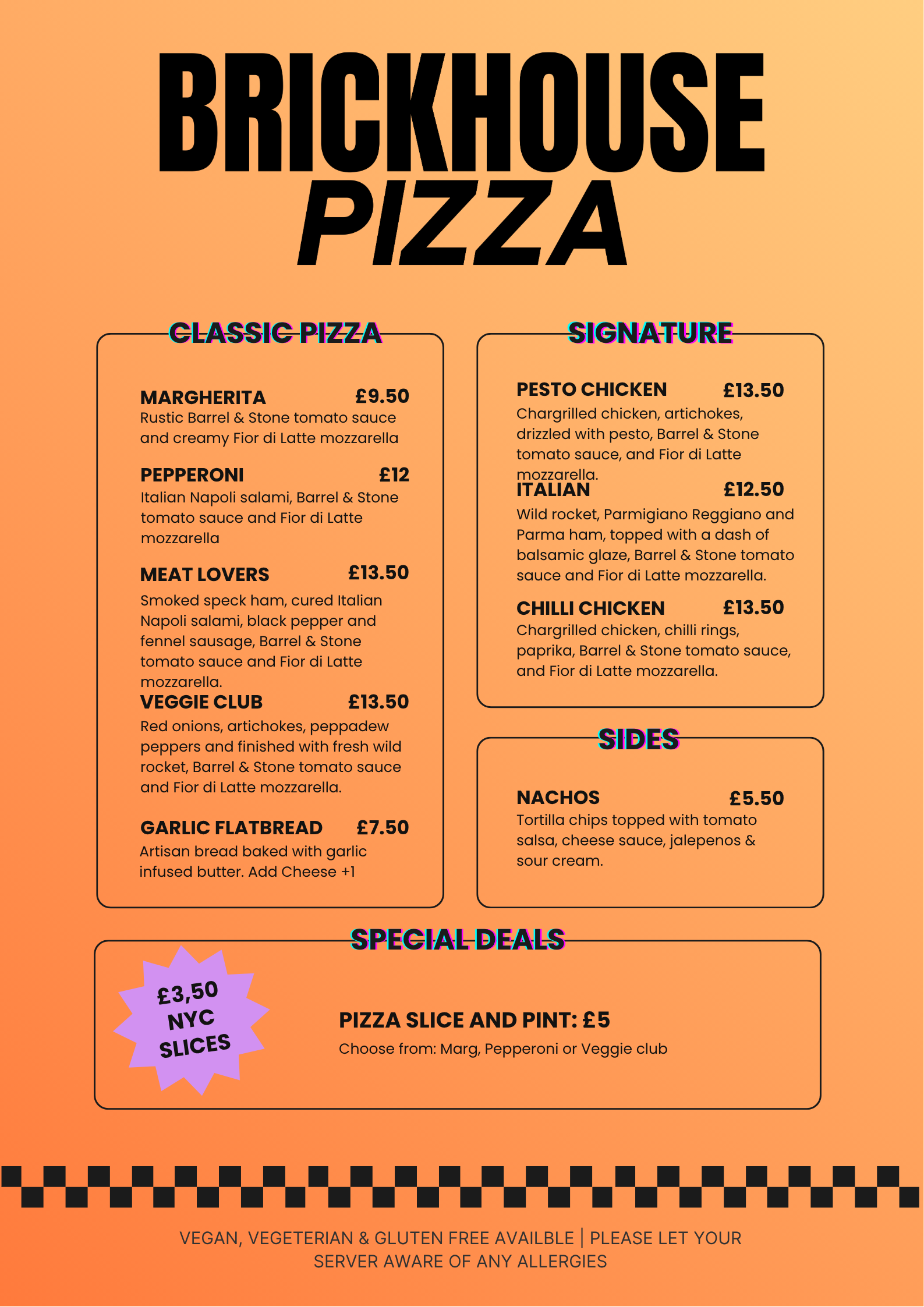 With a variety of pizzas and vegan & gluten free options our menus cater for all tastes.